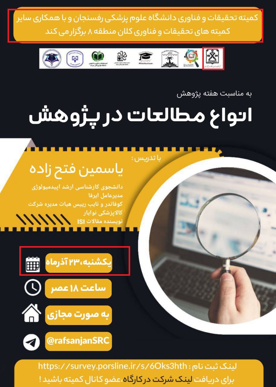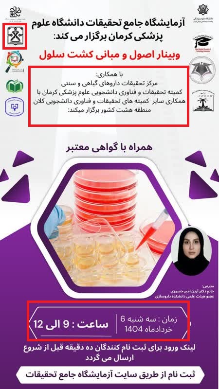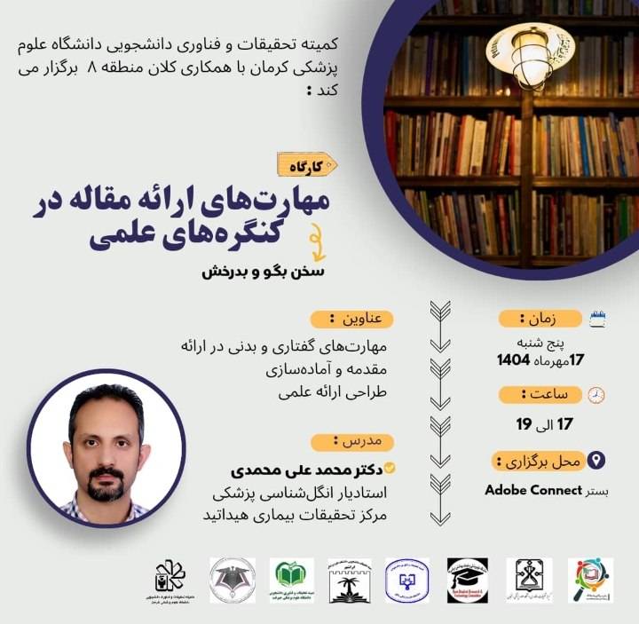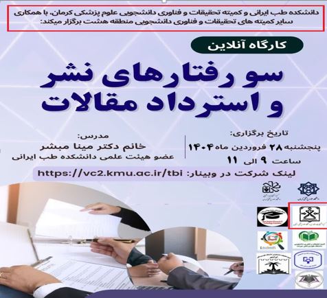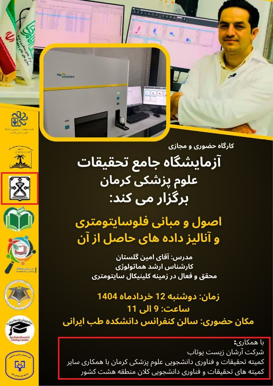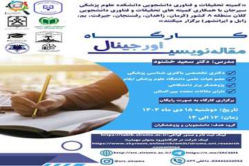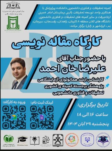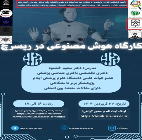 کارگاه آموزش پروپوزال نویسی-28فروردین-2اردیبهشت-3اردیبهشت1404 کارگاه تکنیک های کار با حیوانات آزمایشگاهی-1اردیبهشت1404 کارگاه طراحی پرایمر8اردیبهشت1404 وبینار انواع مطالعات-29اردیبهشت1404 آموزش طراحی پوستر با اپلیکیشن14فروردین1404 کارگاه کاربا حیوانات آزمایشگاهی و هنر القای بیماری درآنها21اردیبهشت1404 کارگاه اصول سرچ پیشرفته6خرداد 1404 کارگاه آزمایشگاه10الی20خرداد1404 کارگاه آموزش پژوهش12مرداد1404 مدرسه پروپوزال نویسی-31فروردین1404 کارگاه سرچ پیشرفته در پایگاه پابمد20آبان 1404 چرایی و نقشه راه پژوهش8آذر1404